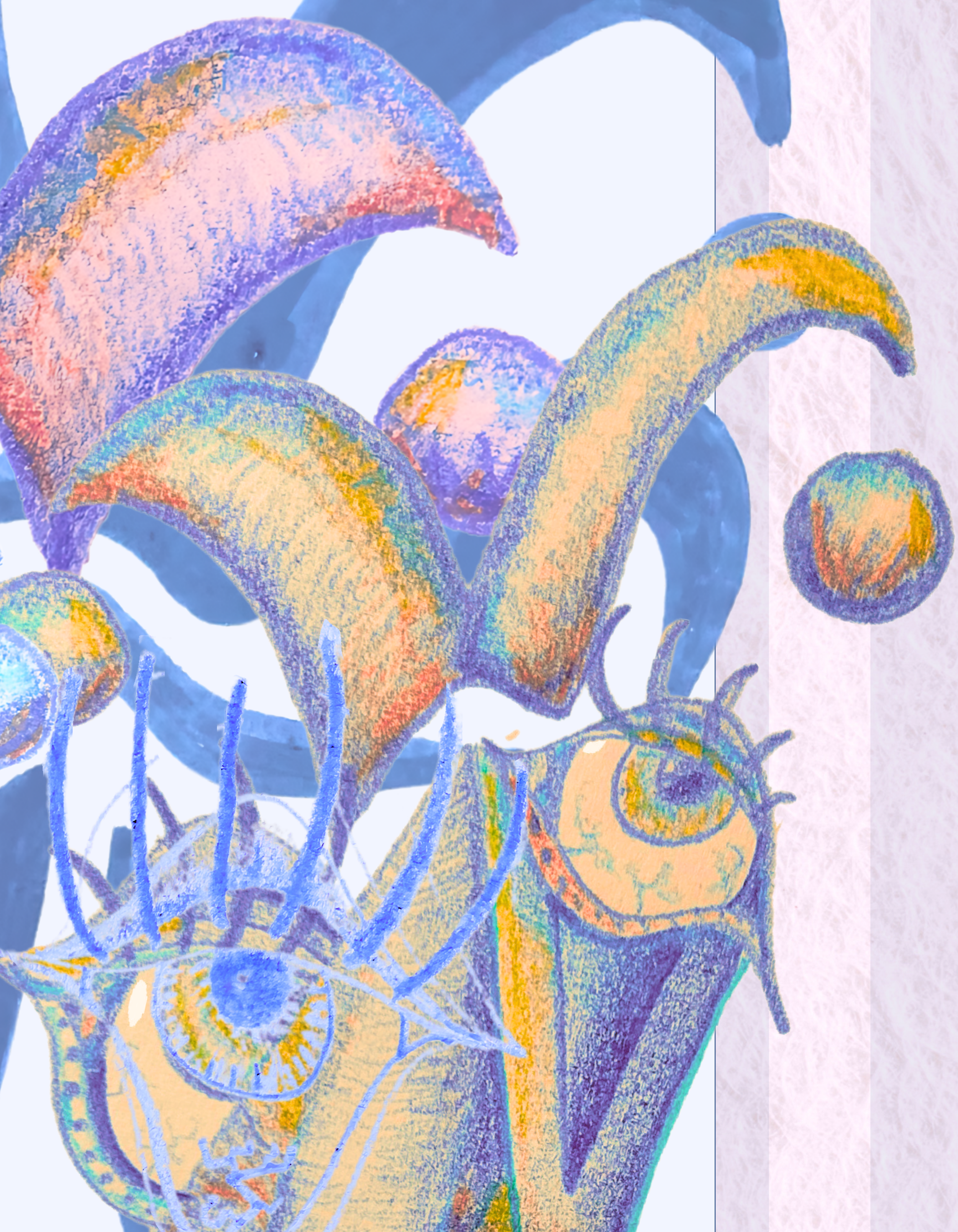 Ink & Colored Pencil drawings scanned and arranged digitally, 2024.